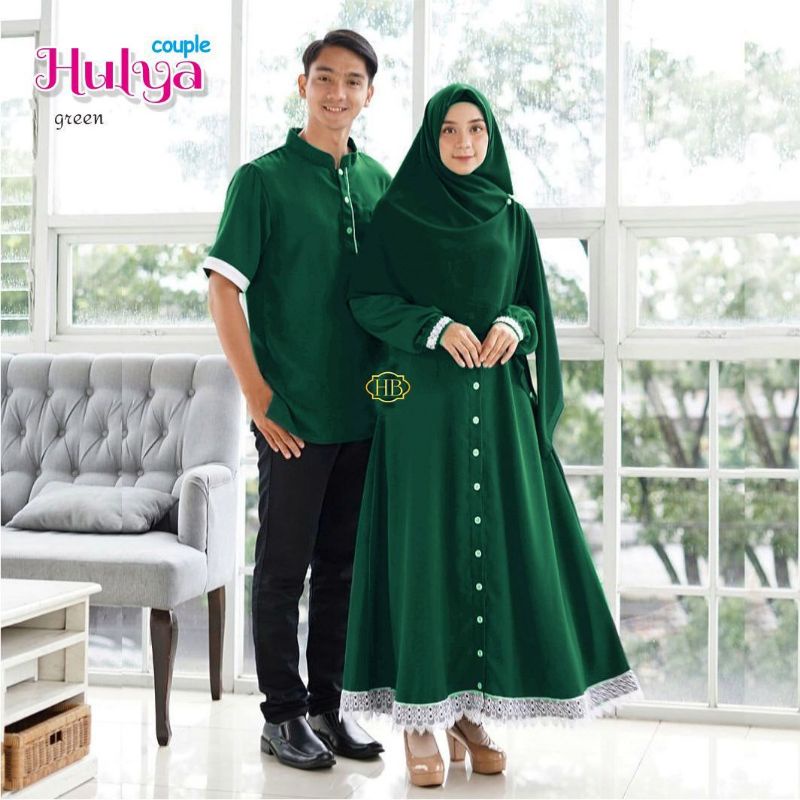Jual Gamis Couple Dewasa Couple Muslim Warna Hijau Tua Kombinasi Renda Indonesia Shopee Indonesia