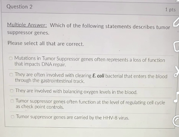 Mutation to a TSP gene will cause a necessary. Carbon monoxide overstimulates the heart b. Cancer is diagnosed by the presence of a.